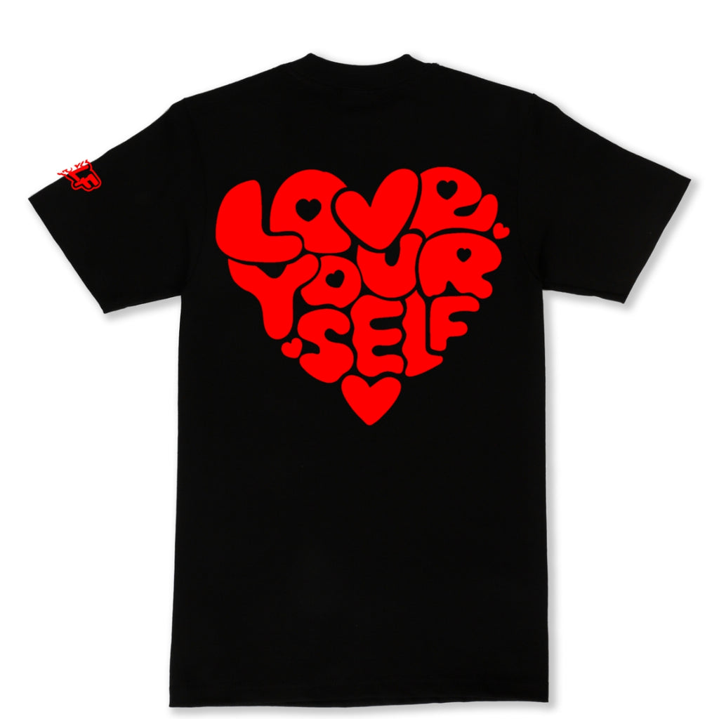 "Embrace self-love in our Red and White Love Yourself Tee. Made with the highest quality materials, this comfortable and stylish set is perfect for a day of self-care. The perfect reminder to practice self-love, this tee is a must-have for any fashion-forward individual. 100% love yourself, 0% compromise."