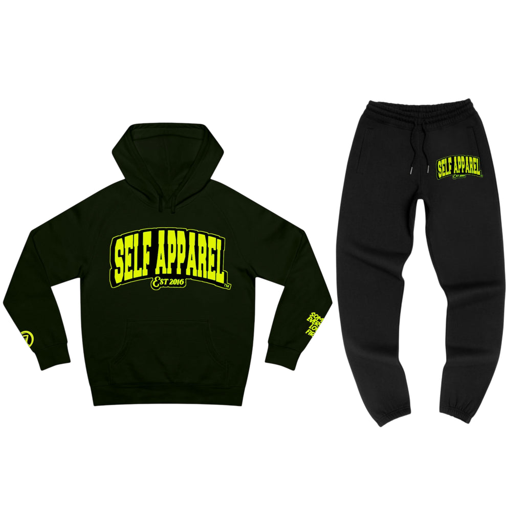 This Grey Black and Electric Sweatsuit features a soft cotton feel and showcases a self apparel arched logo. Enjoy the comfort and style of this high-quality sweatsuit, perfect for any casual or athletic occasion. Keep cool and comfortable while making a statement with the sleek design and unique logo.Grey Black and Electric Sweatsuit