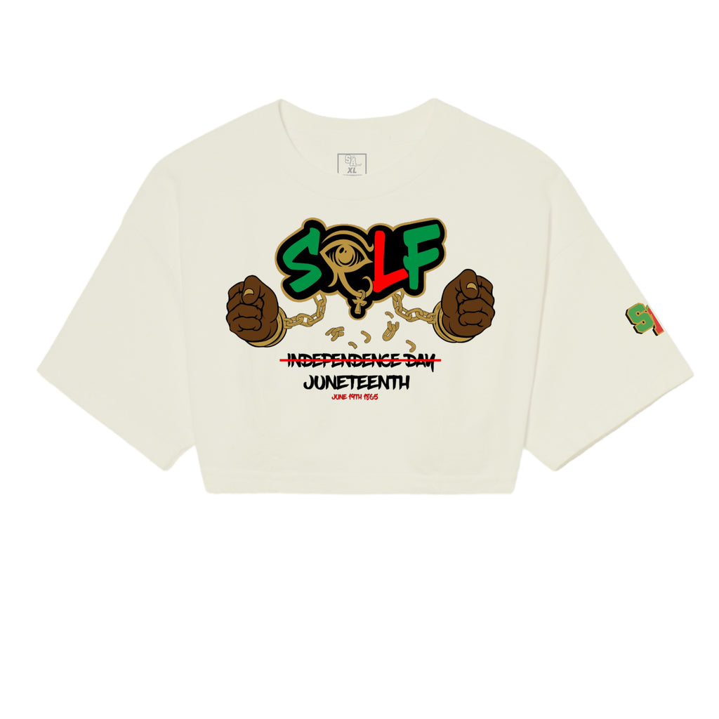 Our Tan Juneteenth Cropped top tee is perfect for showing your support for the Juneteenth cause. Crafted from 100% soft and breathable cotton, this lightweight tee offers comfort and style, all in one. Represent and wear your heart on your sleeve.