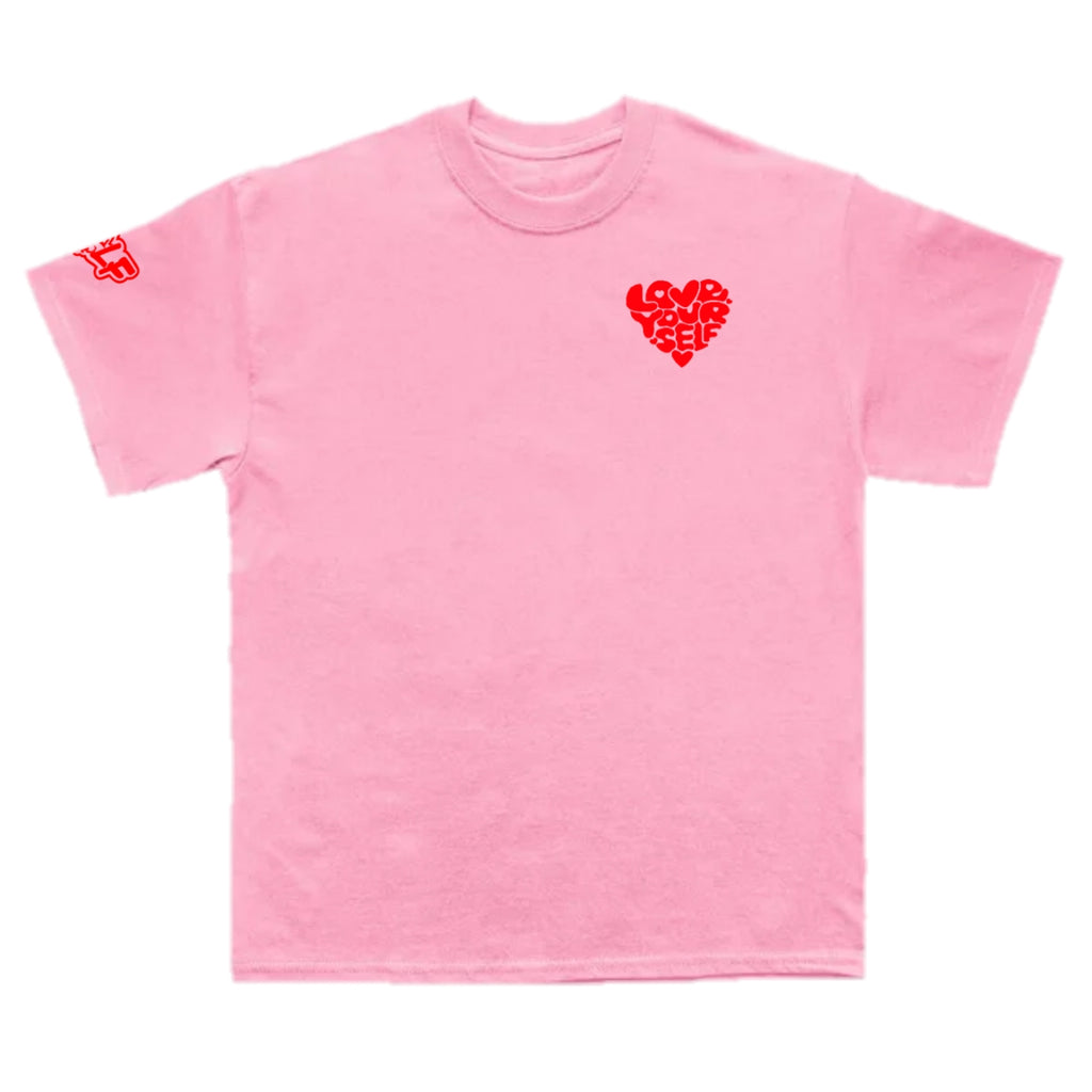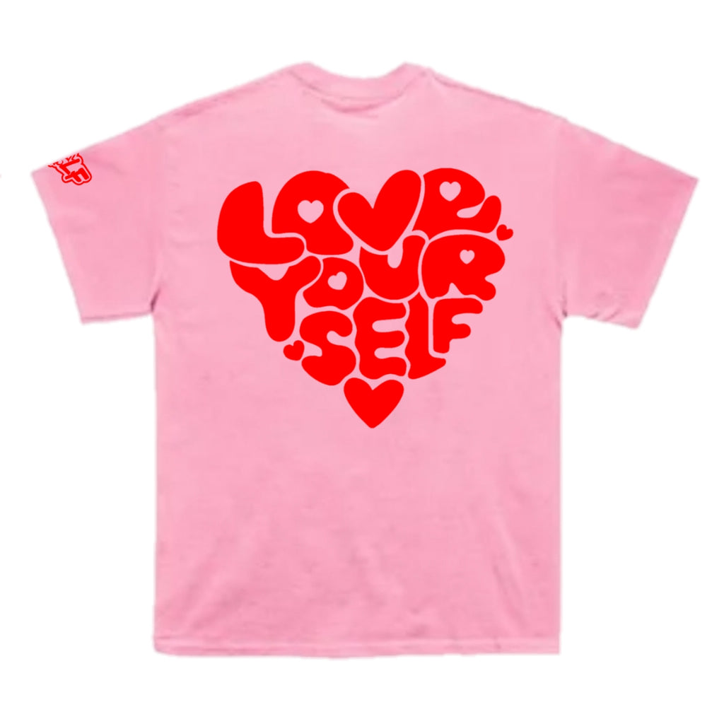 "Embrace self-love in our Red and Pink Love Yourself Tee. Made with the highest quality materials, this comfortable and stylish set is perfect for a day of self-care. The perfect reminder to practice self-love, this tee is a must-have for any fashion-forward individual. 100% love yourself, 0% compromise."