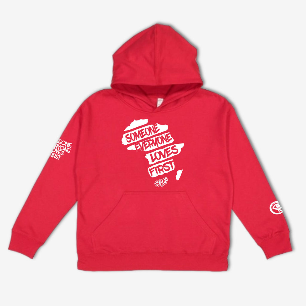 Our trademark motherland design features the color white on a Hooded Sweatshirt.