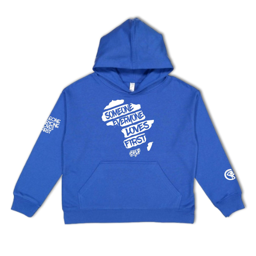 Our trademark motherland design features the color white on a Hooded Sweatshirt.