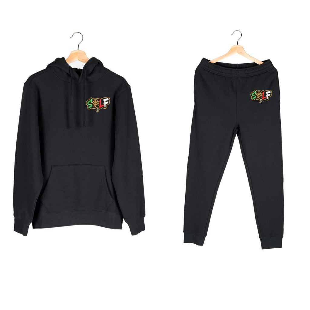 The S.E.L.F Hoodie and Joggers Set features the S.E.L.F logo embroidered with fine stitching into the garment.